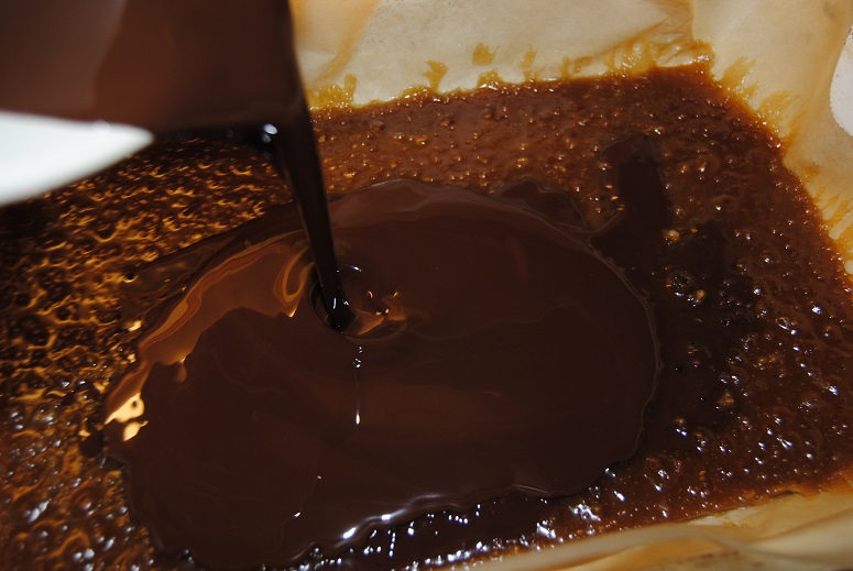 När knäcken stelnat, torka av den ordentligt med hushållspapper annars kan det bli så att chokladen inte fäster (något min inte riktigt gjorde så torka ordentligt!!).